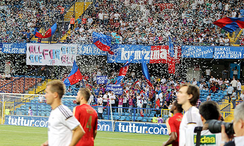 Rosenborg yppet seg, men var først og fremst solide bakover mot Karabükspor. Se bildene fra europaligakvalifiseringa! Reservene varmet opp. Mens Søderlund med vondt venstrelår holdt seg sammen med Schwabe. Gamst på gamle tomter. Kaostifo bak det ene målet. Reginiussen hilste på Larrys Mabiala. Ingebrigtsen, Hoftun og Jamtfall noe betenkt. Mer løssluppen stemning lenger bort på benken. Bra trykk også bak det andre målet. Strandberg stanget over mål. Diskerud diskuterte med dommeren, mens Abdou Traoré sneik seg stille unna mot gamleklubben sin. Reginiussen kom på flere raid før pause. Riski fikk lagt inn ... ... til Diskerud ... ... som headet utenfor. RBK hadde veldig mange cornere en periode. Mikkelsen startet som høyreback for femte kamp på rad. Mix forsøkte å finne Riski. Gamst i noe uvant rolle som høyreving. Før pause giret Karabükspor om, traff stolpen og holdt Lunna i varmen. Bare to RBK-supportere på bortefeltet. Schwabe har fått Jon Olav Drogset som ny kollega. Riski spilte fri Skjelvik ... ... men keeper kom først på ballen. Jensen tok motspillerne med ut på løpetur. Riski dempet fint ... ... og skjøt. Strandberg måtte ut med smell i hodet etter kollisjon med egen keeper. Selnæs forsøkte å finne på noe smart i hektiske sluttminutter. Heller ikke innbytter Rønning fikk ballen i mål. Onur Ayık fintet bort Jensen ... ... men Hansen reddet glitrende! Hjemmesupporterne måtte se langt etter seier. Ikke RBK i mot at overtida ble veldig oppstykket. 0-0 sto seg. Lunna takket for støtten fra tribunen. Mens Ingebrigtsen lurte på hvordan det gikk med hodet til Strandberg.