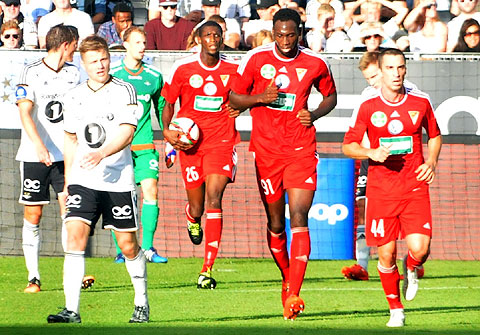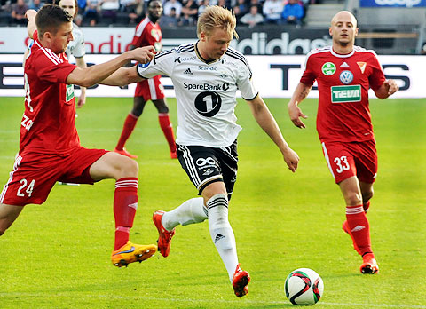 Rosenborg tok knekken på gjestene med to mål på kort tid, og slapp å slite for avansement i europaligakvalifiseringa. Se bildene fra 3-1-seieren! Enslig madjar med to bannere. Svensson satte standarden med sololøp. Fra nesten død vinkel stanget Søderlund hjemmelaget i ledelse. Jensen fant borteste kryss! Glad anfører. Geoffrey Castillion reduserte rett etterpå. Men lufta gikk ut av Debrecen tidlig i 2. omgang da Peter Maté bruke kneet for å stanse Helland ... ... og ble utvist etter to gule kort. Søderlund og RBK kontrollerte kampen uten å skape mange kjempesjanser. Skjelvik på ferde ... ... og Vilhjalmsson kunne juble for sitt første RBK-mål!