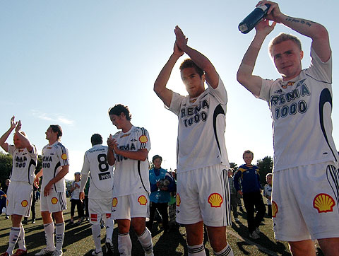 Rosenborg kjørte over Strindheim i 3. runde av norgesmesterskapet. Se bildene! Nordvik vikarierte for Lustig på høyreback, men blir venstreback mot Aalesund? Et frispark var eneste sjanse til Strindheim før pause. Tettey og RBK var ikke så mye bedre. Men Sellin og gjengen fikk mer styr på det hele. Zahora headet et Dorsin-innlegg i mål etter 36 minutter. Feiring. Zahora burde ha doblet ledelsen før pause... ...men forsøket alene med keeper mislyktes. For første gang siden 2. runde på Steinkjer i 2006 ble en RBK-cupkamp verken sendt på TV eller web-TV; bare høydepunkter i etterkant. Olsen driblet seg fri og scoret rett etter hvilen. God stemning i klokkesvingen. Hjemmesupporterne i Myriaden ga ikke opp. Innbytter Demidov fikk ikke ballen i mål. Olsen finner Sellin... ...som lurte offsidefella og økte til 0-3. Olsen ser sitt skudd gå i mål. Deretter en kipp over keeper. Nesten ekte hat-trick for Olsen, som bare startet fordi Miller skadet seg på oppvarminga! Sellin med svært elegant lobb i mål. Hamrén løs i snippen, men likevel stiligere antrukket enn på Levanger. Strindheim fikk trøstemål minuttet før slutt. På overtid fant Konan innbytter Helland... ...som fikk banket inn sitt første RBK-mål i krysset. Takk for støtten! Deretter autografskriving for Nordvik og resten.
