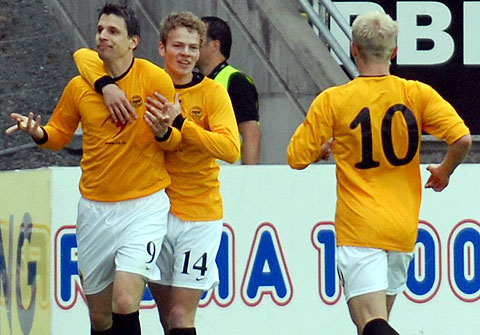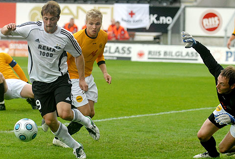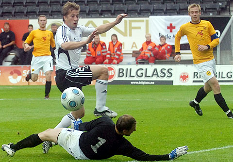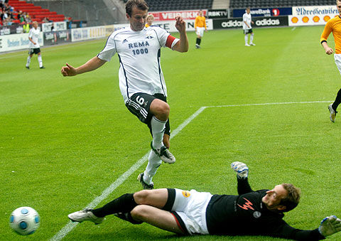 NSI Runavik skapte problemer for RBK, men laget står nå med elleve strake seiere i Norge og Europa. Se bildene! Zahora header utenfor på et av utallige hjørnespark. I stedet scoret Karoly Potemkin på et flott skudd. Glad færøysk ungarer. Keeper Meinhardt Joensen spilte sin livs kamp. Skjelbred på ferde. Zahora på nytt raid. Strand header corner mot bakerste stolpe, men redning på strek! Iversen fikk det heller ikke til. Zahora styrer Olsen-innlegg utenfor. Kroatisk fortvilelse. Konan mislykkes. Enda et forsøk fra Zahora. Zahora med tungt langskudd... ...Iversen skjøt returen ned i bakken... ...og via keeper i mål! Skjelbred med et siste forsøk før pause, men lobben traff oversida av tverrligger. Olsen og RBK var tammere etter pause. Tettey passerer keeper på overtid... ...blir hindret... ...og får straffe! Konan sikrer seier! Lago godt fornøyd med at seiersrekka ikke ble brutt. Olsen klinker til på Sellin-innlegg. Og jubler for sitt første europacupmål! NSI-trener Pouli Poulsen ikke fornøyd med straffesparket. Jubel foran Kjernen.