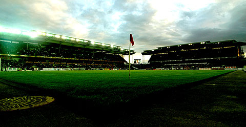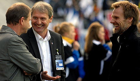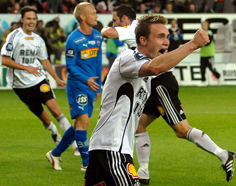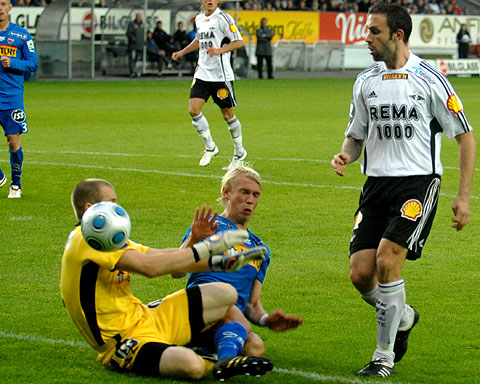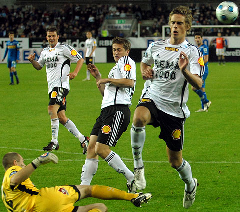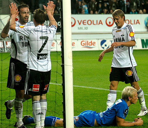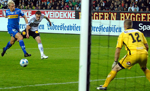 At Rosenborg faktisk banket Sandefjord 4-0 kom nesten litt i skyggen av snakket om kommende gullfest. Se bildene fra kampen! Tidligere spiller, trener og direktør Arne Dokken tilbake på Lerkendal. I overkant av 18 000 på plass - brukbart mot uglamourøs motstand. Demidov og Annan har funnet tonen på midtbanen. Haakons Schwabe måtte i aksjon da Skjelbred fikk en smell. Iversen med mislykket heading. Noen minutter senere traff Lustig atskillig bedre med sitt saksespark! Brasilianske takter over høyrebacken fra Umeå! Langemann i godt humør. God stemning i Kjernen også. Prica med en siste sjanse før pause. Alexander Gabrielsen fikk virkelig kjørt seg etter pause... ...men ble først reddet av Espen Bugge Pettersen. Demidov prøvde å tråkle seg forbi gamle lagkamerater. Deretter var Olsen på ferde etter å ha fått starte sin tredje strake kamp i fravær på rekke og rad fra Lago, Prica og Sapara... ...ballen havnet hos Skjelbred, som la inn til målscorer Prica. Lago med full kontroll bakover. Olsen på nytt tokt. Denne gang sklei Gabrielsen ballen i eget mål. Deretter fikk Olsen skutt i duell med samme mann... ...ballen trillet inn på riktig side av stolpen. Vilt brøl fra Olsen etter mange bom mot Lyn og Stabæk - og tre måneder uten mål. For tredje kamp på rad fikk en juniorspiller debutere i sluttminuttene. Denne gang var det duket for Markus Henriksen. Hamrén fortsatt uvitende om sluttresultatet i Tromsø. Sladreguttene Demidov og Iversen desto gladere for RBK-seier og Molde-tap.