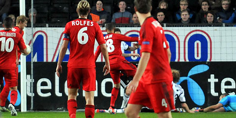 Presset fra Bayer Leverkusen ble for stort for Rosenborg. Se bildene fra 0-1-tapet! Spente hjemmesupportere. RBK sliter fortsatt med å få til godt, oppstilte lagbilder. Prica med tidlig avslutning. Leverkusen fikk mange cornere, og Örlund levde farlig. Fernandes traff kryssfestet. Midtbanen med Svensson hang med før pause. Selnæs la inn fint... ...men Prica traff bare keeper. Den gamle kjenningen Sidney Sam (18) fikk returen fra Örlund... ...og en offsideplassert Stefan Kiessling headet i mål.