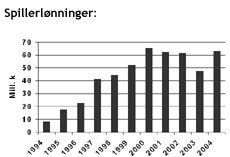 Economical powerhouse The annual turnover increased very slowly, and was in 1994 modest 23 million NOK. Most of the players were still just semi-professional, earning around 150,000 a year. They had other jobs besides playing football.