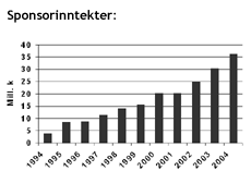 Perhaps the greatest increase has been in sponsor contracts. 4 million in 1994 has become 56 million this year: